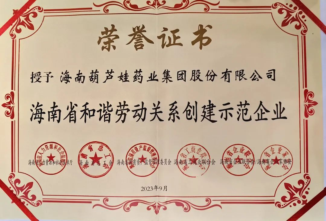 10月8日,全省构建和谐劳动关系先进表彰暨经验交流会在海口召开。会上,省领导为“海南省和谐劳动关系创建示范企业”授牌,币游国际药业集团党委书记、董事长刘景萍接受表彰,并作为和谐劳动关系创建示范企业代表作经验交流。